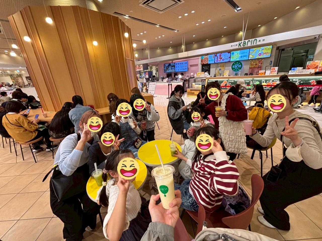 昼食はビュッフェでお寿司やたくさんの料理を楽しみました。デザートもワッフル、パフェ、かき氷などあり全部盛りをするなど、お腹いっぱいになるまで食べていました。買い物では事前に持って行くお小遣いを相談し、シール帳やネイルシール、髪ゴムなど好きなものを買っていました。